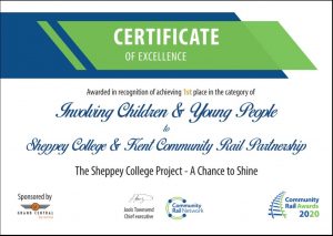 Winner – Involving Children and Young People. Kent Community Rail Partnership and Sheppey College worked together to provide opportunities for students to get involved in a range of community projects. The main aim was to empower students to showcase their talents, boosting self-esteem, providing real-life experiences, and helping build portfolios to enhance employment prospects.