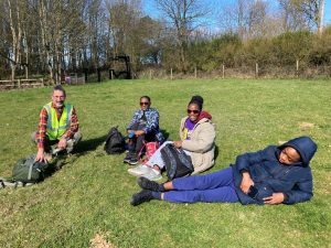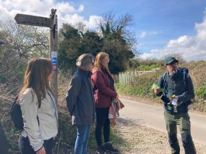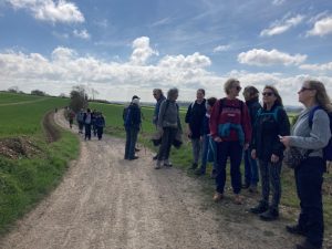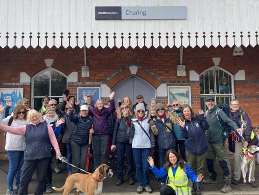Working in collaboration with the North Downs Way National Trail ‘Putting Down Routes’ project Kent CRP managed a 10 mile guided walk from Charing railway station to The Signal Box Café at Hollingbourne railway station. Eighty walkers signed to attend and on the day 37 walkers participated, partly due to transport difficulties (explanation later). The Putting Down Routes project, a collaboration between the Kent Downs National Landscape and the North Downs Way National Trail, is transforming the National Trail into a safer, more inclusive and accessible route where everyone is welcome. Together we all aim to bring more sustainable and accessible tourism to the area and extend the typical summer tourist season to all year round by bringing participants in by train.