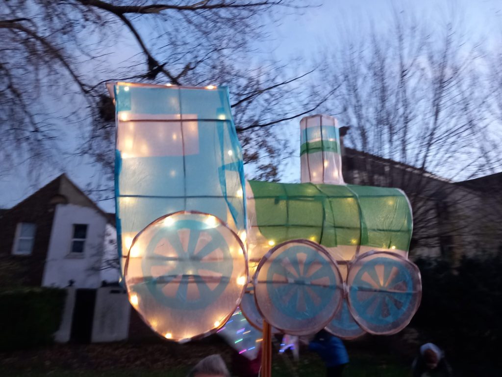 Organised by Chris Reed from Big Fish Arts, a 2 month program of workshops in local school had taken place with children making their own lanterns. With it being the 200th anniversary of passenger rail travel this year, with the first train carrying passengers on 27th September 1825, the chosen theme for this years lantern parade was RAILWAY 200 and TRAINS!!!