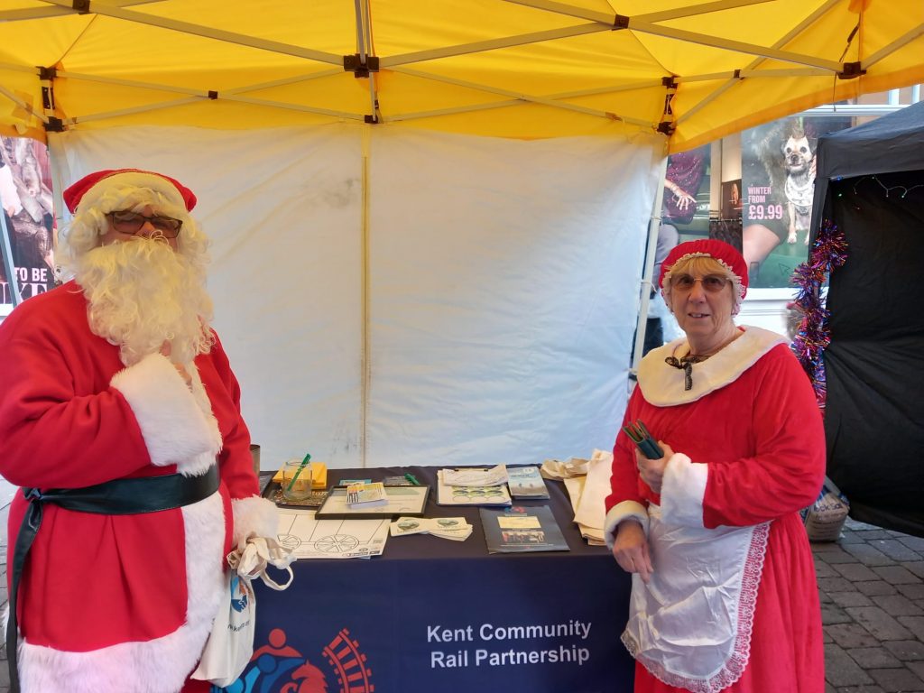 On the Kent CRP Stall, we had Project officer Vicky Wright and KCRP committee members Jonathan Fryer and Dominic Noades. There was a steady flow of interaction, and we gave out an array of goodies from Christmas KCRP train colouring in, Railway 200 pencils, tote bags and information leaflets (including how to get involved with KCRP and local cycle and walking maps).