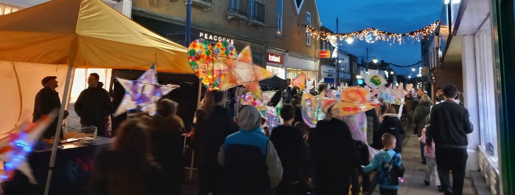 As dusk set in around 4pm, there was a very special gathering outside Sheerness MacDonalds. There had been whispers and excited conversations we had heard from members of the public all day about the Lantern Parade.