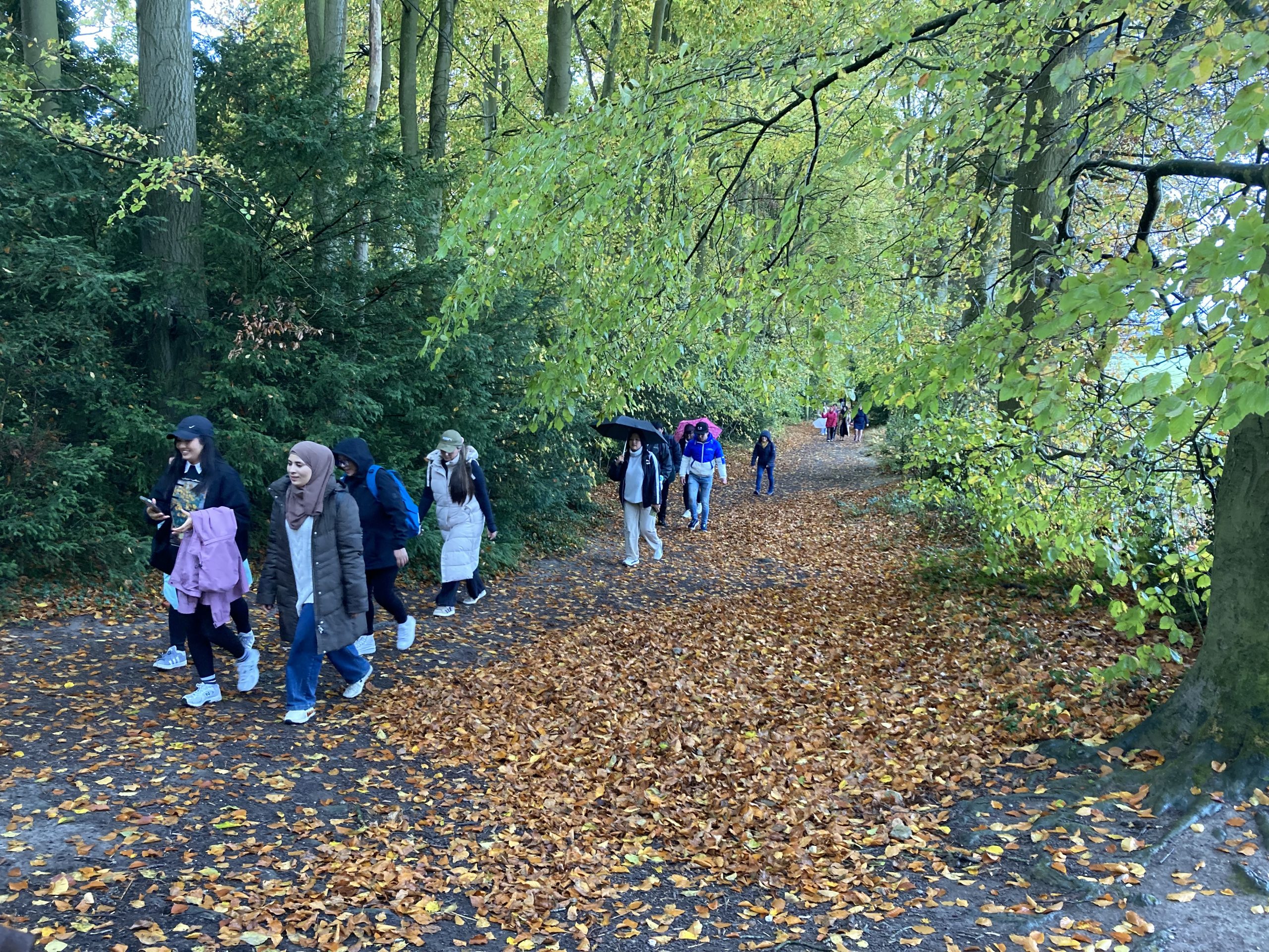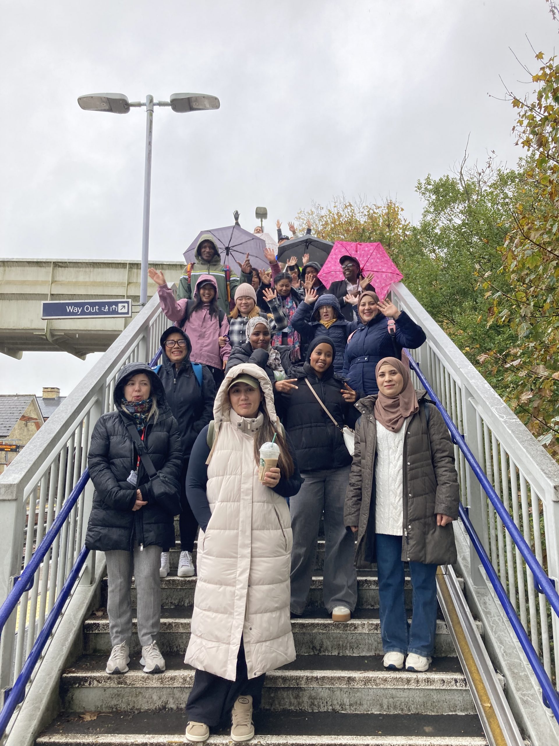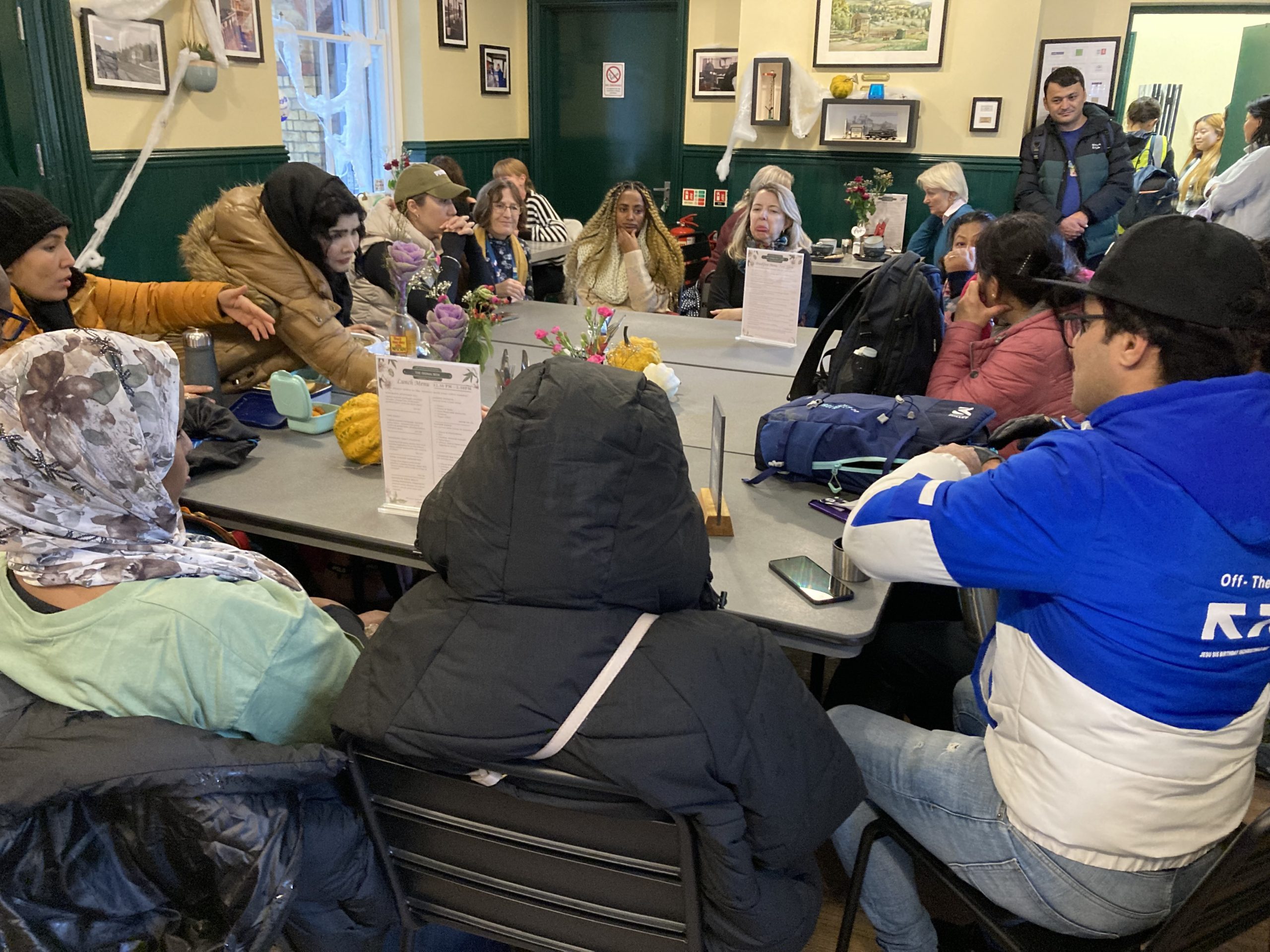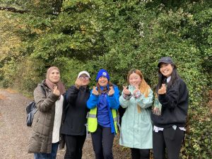 Working in collaboration with Sarah Moon and the Kent Downs National Landscape ‘Putting Down Routes’ project, Kent CRP undertook train travel training and a guided walk on the North Downs Way for Ashford College adult learners for whom English is spoken as another language (ESOL) and 2 of their tutors. Thirty four students were booked to attend the event however, rain and temperatures of between 8 and 9 degrees were forecast for the duration of the guided walk resulting in 21 brave and adventurous students taking part. The students were from Somalia, Uganda, Afghanistan, Syria, Ethiopia, Brazil, Congo, Kazakhstan, Nepal and Iran. The collaboration aims to bring more sustainable tourism to the area by bringing participants in by train, to extend the typical summer tourist season to year round and to share the area with less represented members of our community.